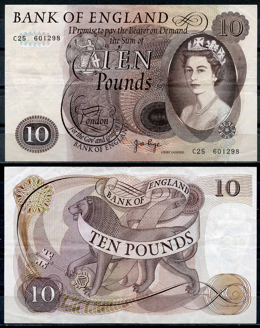 Англия 10 фунтов ND (1964-1975) Елизавета II (1952-2022), лев, подпись J.B. Page Pick 376c бумага 451-195-2