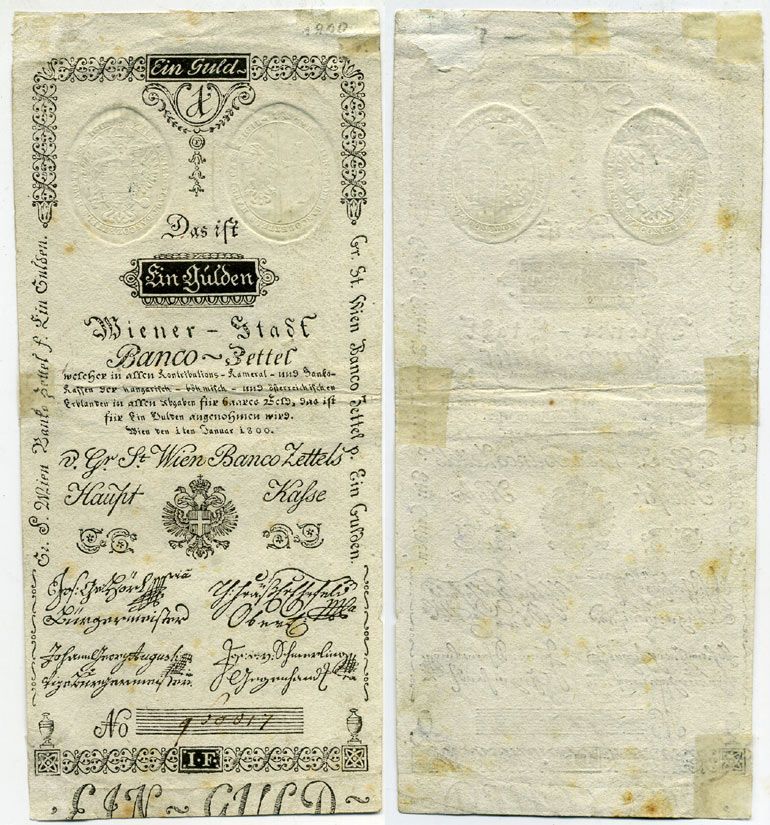 АВСТРИЯ 1 ГУЛЬДЕН 1800 ВАЙНЕР БАНК Pick A 29 бумага aUNC 000-00-00