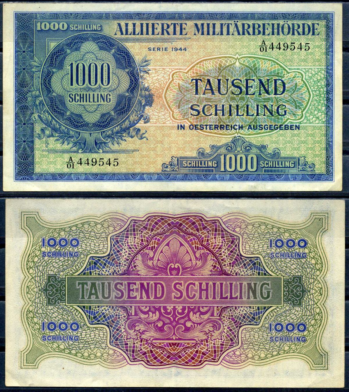 Австрия 1000 шиллингов 1941 марка Союзного военного командования Pick 111 бумага 451-633-2
