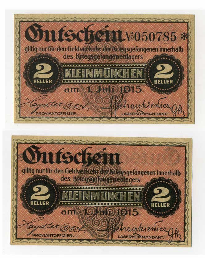 -----Австрия 2 геллера 1915 Малый Мюнхен, лагерь военнопленных C-1396 бумага UNC (пресс) 504-61-2-2