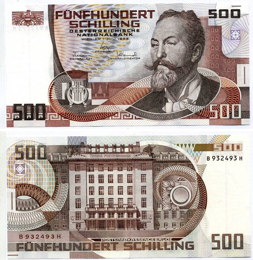 АВСТРИЯ 500 ШИЛЛИНГОВ 1985 (1986) 1 ИЮЛЯ 1985, ОТТО ВАГНЕР Pick 151b бумага аUNC 000-000-00