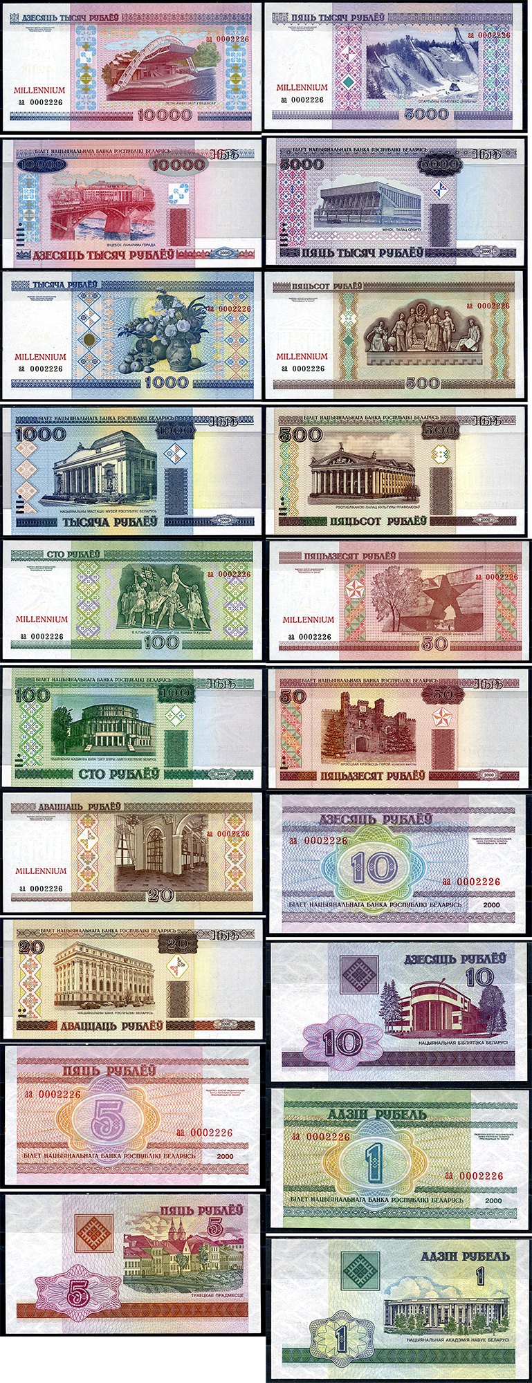 -Беларусь лот из 10 банкнот 2000 Миллениум, полный набор Pick CS1 бумага UNC (пресс) 451-463-2Чехия и Словакия (Чехословакия)ЛюксембургМакедонияНидерланды (Голландия)НорвегияПольшаРумынияСловенияУкраинаФинляндияФранцияХорватияЛатвияШвецияШотландияЭстонияЮгославия, СербияИсландияШвейцарияКипрПриднестровьеМальтаРеспублика Сербская (Босния и Герцеговина)Молдавия (Молдова)БельгияАвстрияАлбанияАнглияЛитваБолгарияБосния и ГерцеговинаВенгрияГерманияГрецияГрузияДанияДжерси, Гернси, Остров Мэн, ГибралтарИспанияПортугалияИталияДругие страны