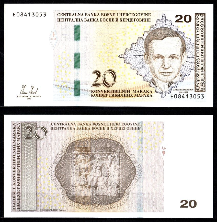 -Босния и Герцеговина 20 конвертируемых марок 2012 Антун Бранко Шимич, фрагмент Стечака Радимля Pick 82 a бумага UNC (пресс) 7523-50-4-2Чехия и Словакия (Чехословакия)ЛюксембургМакедонияНидерланды (Голландия)НорвегияПольшаРумынияСловенияУкраинаФинляндияФранцияХорватияЛатвияШвецияШотландияЭстонияЮгославия, СербияИсландияШвейцарияБеларусьКипрПриднестровьеМальтаРеспублика Сербская (Босния и Герцеговина)Молдавия (Молдова)БельгияАвстрияАлбанияАнглияЛитваБолгарияВенгрияГерманияГрецияГрузияДанияДжерси, Гернси, Остров Мэн, ГибралтарИспанияПортугалияИталияДругие страны