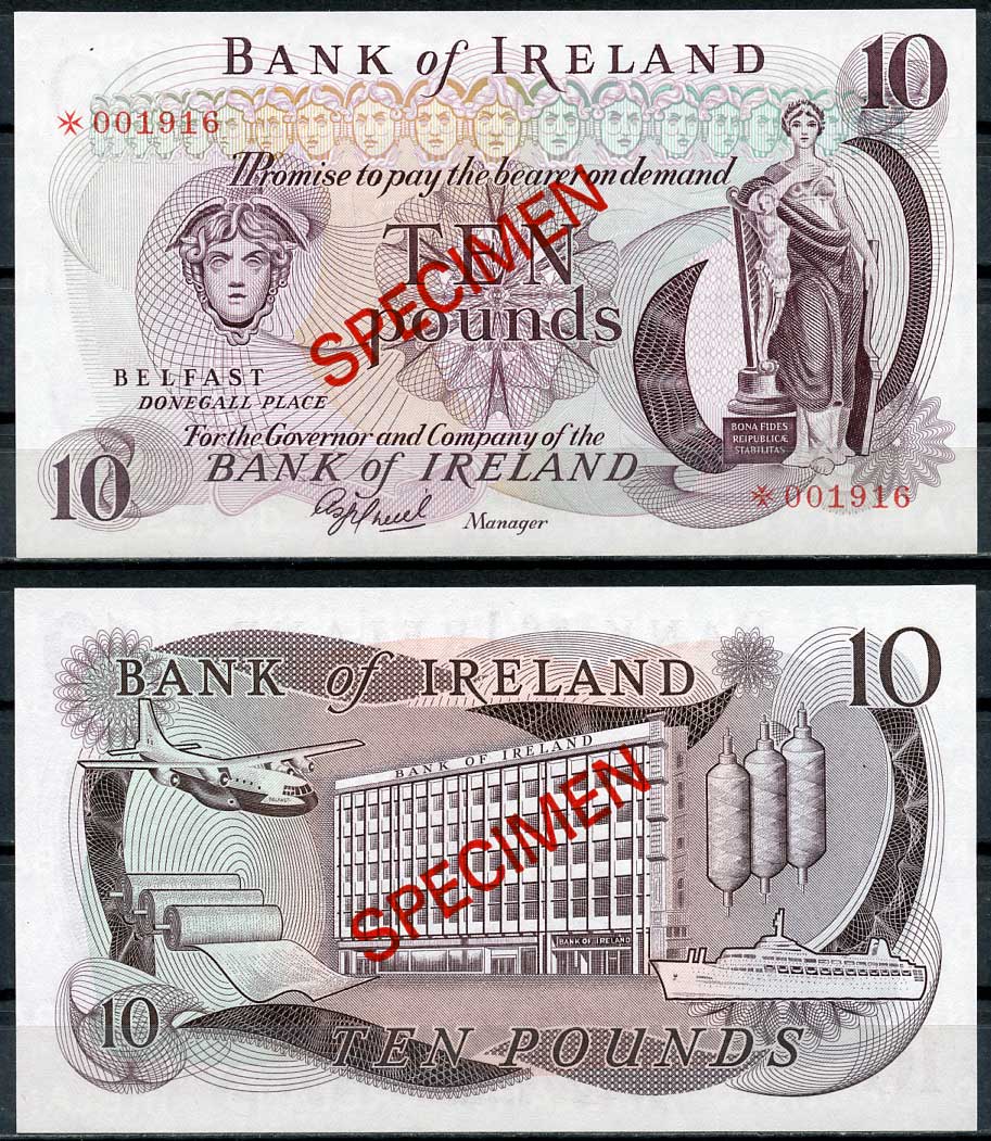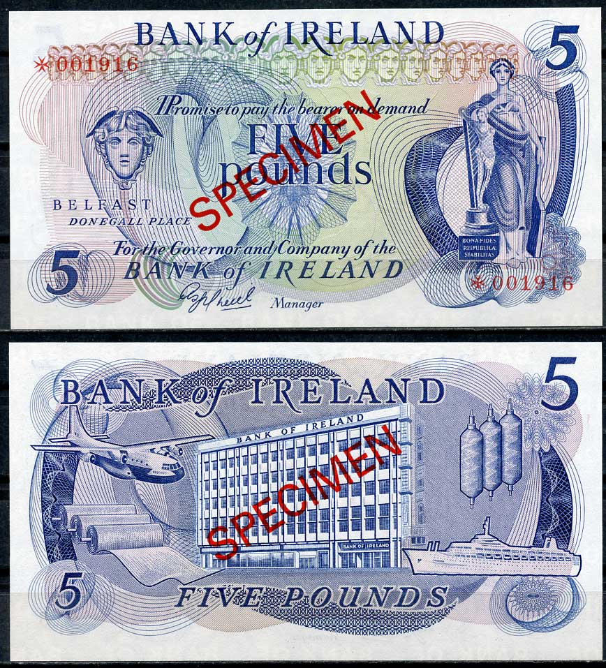 Северная Ирландия 1, 1, 5, 5, 10, 10 и 100 фунтов ND (1974-1978) образец, Specimen, № 001916 Pick 61 s, 62 s, 63 s, 64 s, 247 s, 248 s, 249 s бумага UNC (пресс) 451-268-1