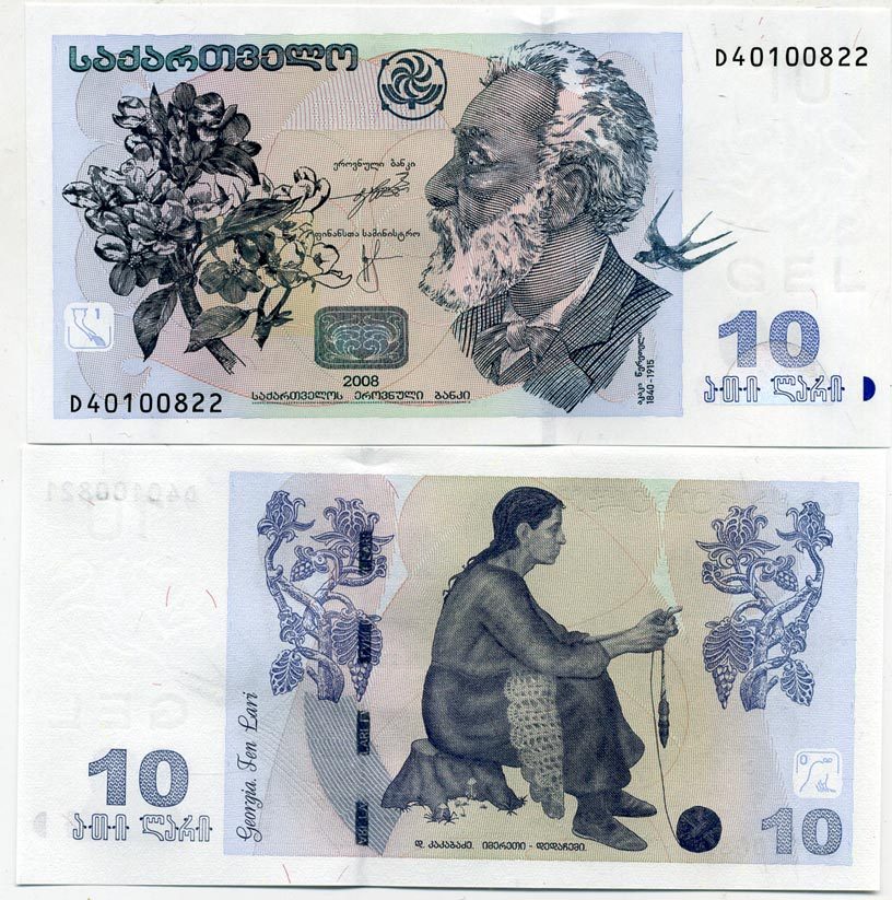ГРУЗИЯ 10 ЛАРИ 2008 Pick 71c, Сергеев 56 бумага UNC (ПРЕСС) 450-93-2