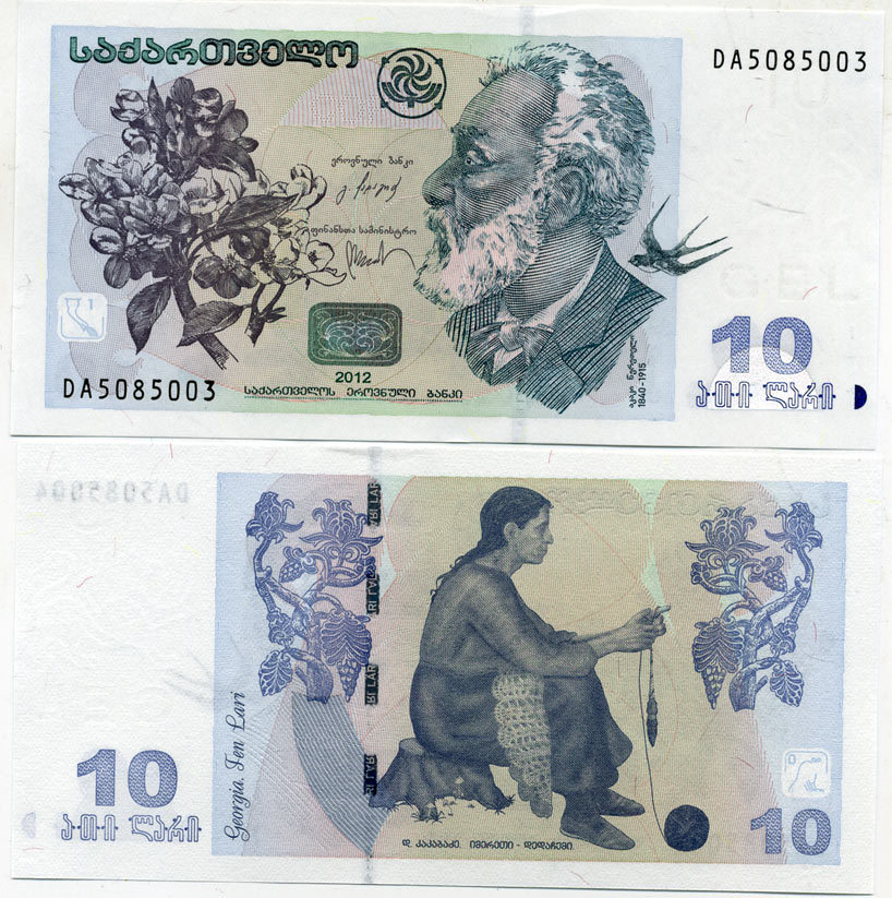 Грузия 10 лари 2012 Акакий Церетели, Давид Какабадзе "Имерети" Pick 71d бумага UNC (пресс) 450-93-3