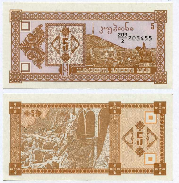 ГРУЗИЯ 5 КУПОНОВ 1992 ВТОРОЙ ВЫПУСК, В ДЕЛИТЕЛЕ 2 Pick 35, Сергеев 7 бумага UNC (ПРЕСС) 8611-20-3