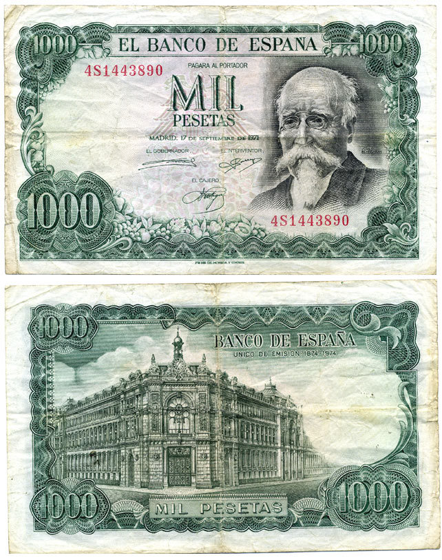 -Испания 1000 песет 1971 (1974) Хосе Эчегерай-и-Эйсагирре, 100 лет со дня того, как Banco de España стал единственным банком-эмитентом (1874–1974) Pick 154 бумага UNC (пресс) 451-156-1Чехия и Словакия (Чехословакия)ЛюксембургМакедонияНидерланды (Голландия)НорвегияПольшаРумынияСловенияУкраинаФинляндияФранцияХорватияЛатвияШвецияШотландияЭстонияЮгославия, СербияИсландияШвейцарияБеларусьКипрПриднестровьеМальтаРеспублика Сербская (Босния и Герцеговина)Молдавия (Молдова)БельгияАвстрияАлбанияАнглияЛитваБолгарияБосния и ГерцеговинаВенгрияГерманияГрецияГрузияДанияДжерси, Гернси, Остров Мэн, ГибралтарПортугалияИталияДругие страны