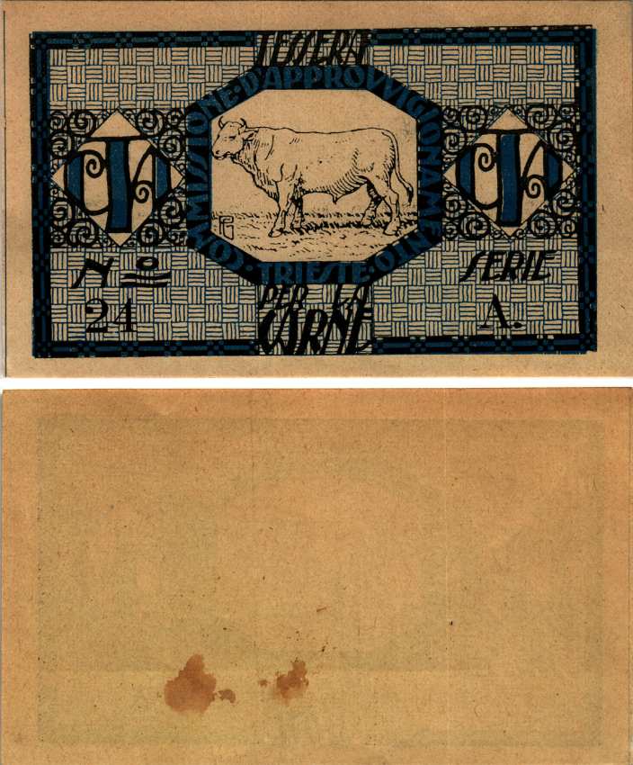 Италия, Республика Триест Карточка на мясо ND комиссия по поставкам Триеста, номер 24, серия A бумага 8607-76-2-2