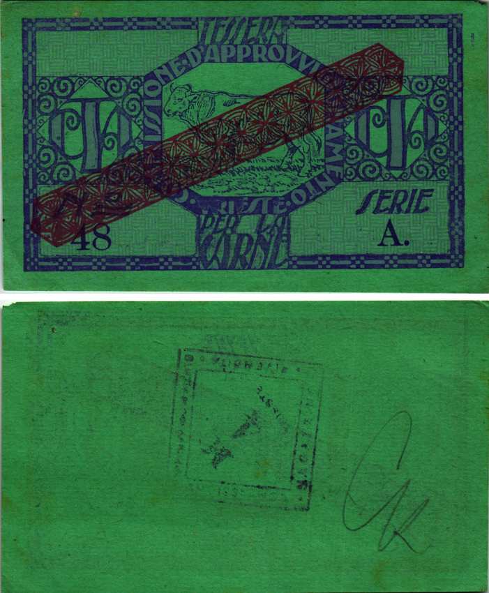 Италия, Республика Триест Карточка на мясо ND комиссия по поставкам Триеста, номер 48, серия A бумага 8607-88-3-2