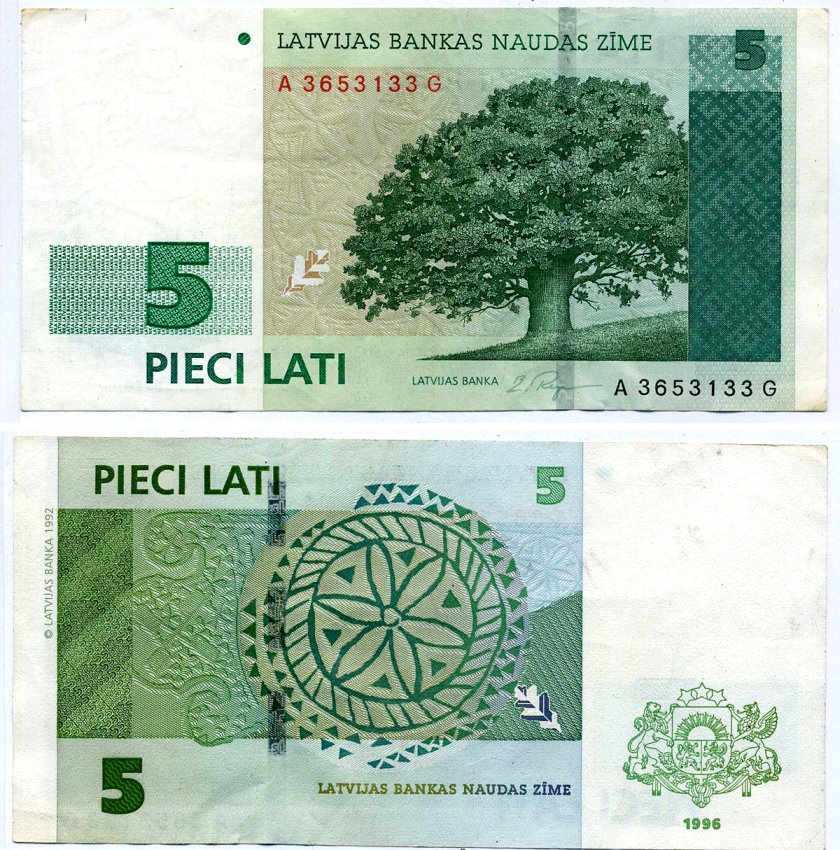 -----Латвия 5 латов 1996 ДЕРЕВО Pick 49а, Сергеев 15 бумага 2197-3-3-2
