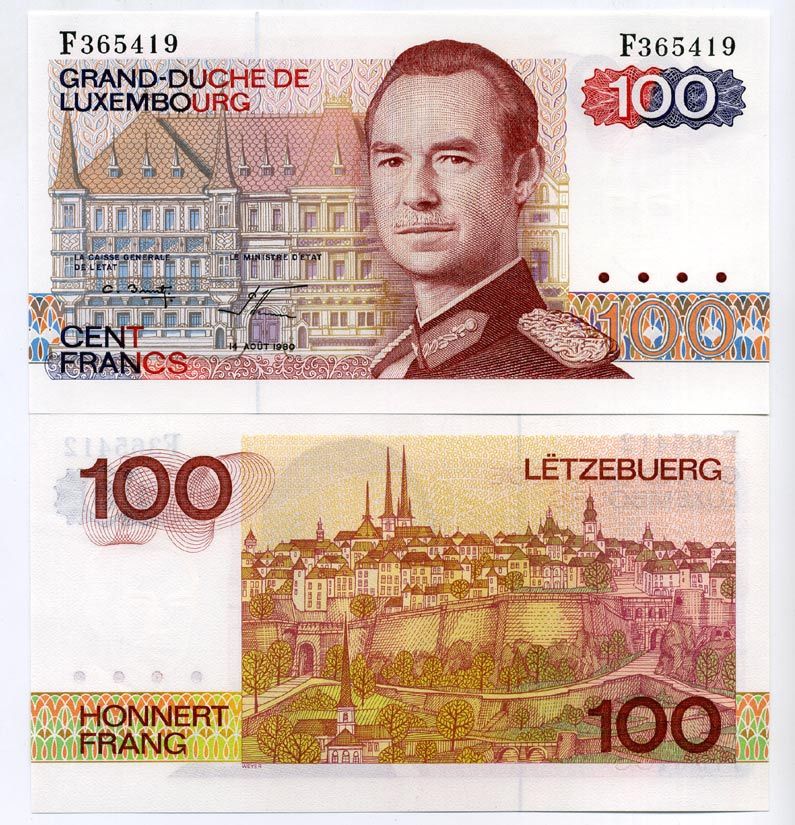 Люксембург 100 франков 1980 14 августа 1980, signatures: Bruck & Wernerбумага UNC (пресс) 00-00