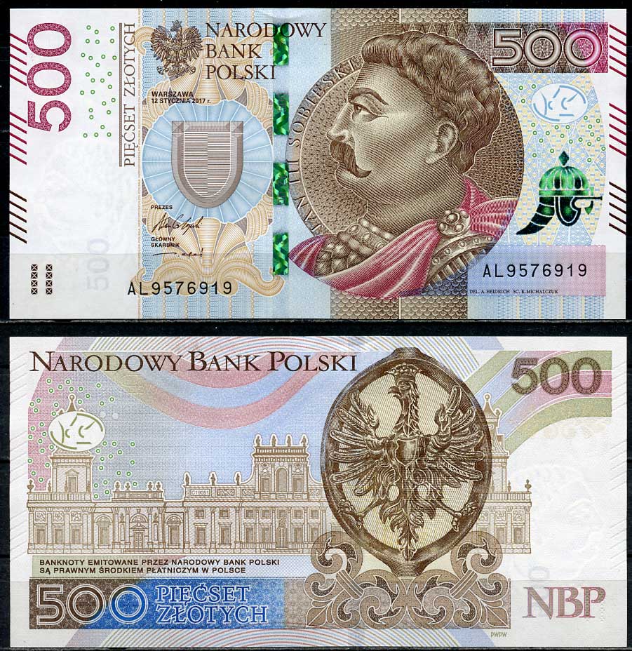 Польша 500 злотых 2017 Король Ян III Собеский, Вилановский дворец (Варшава) Pick 190 b бумага UNC (пресс) 451-681-2