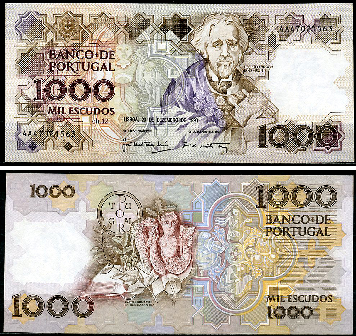 Португалия 1000 эскудо 1990 Жоаким Теофилу Фернандеш Брага Pick 181 h (3) бумага UNC (пресс) 6294-78-2-2