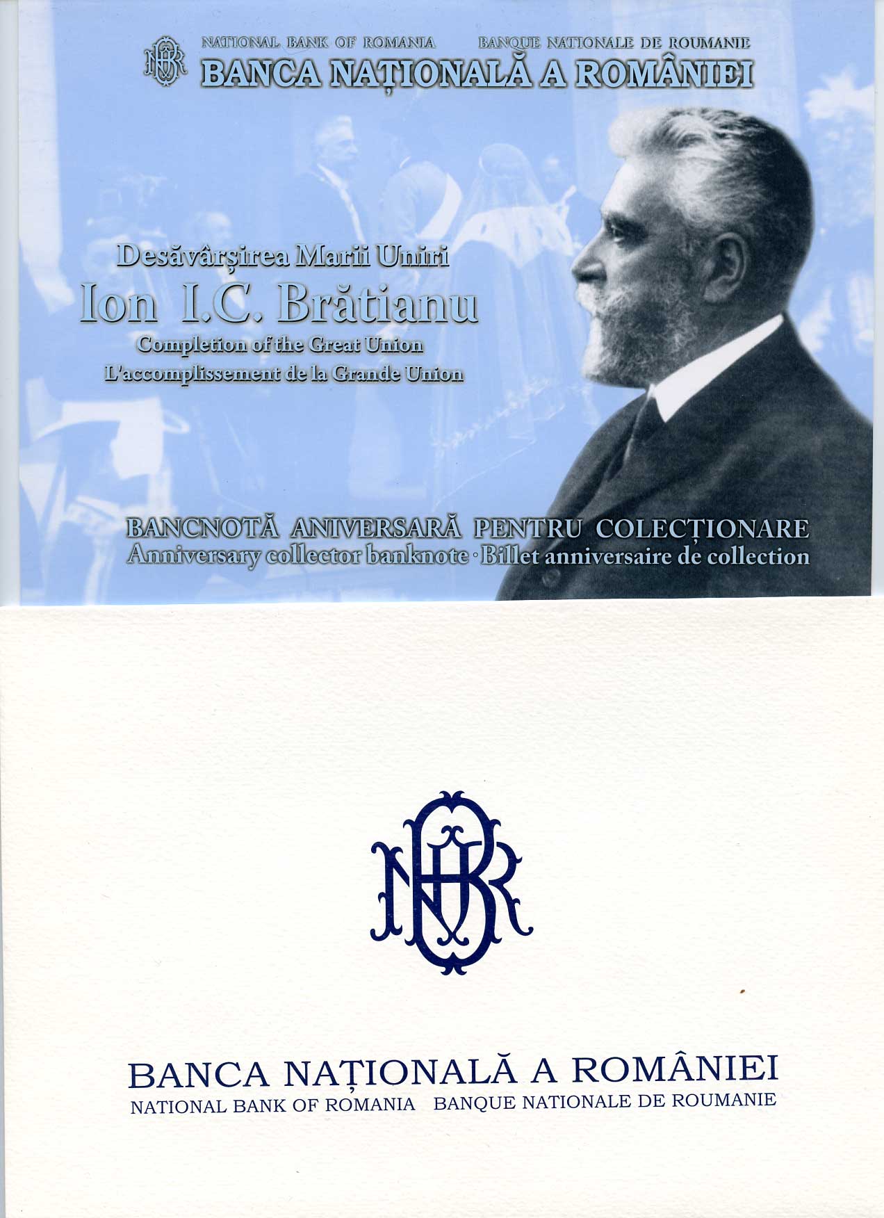 Румыния 100 леев 2019 100 лет Великого объединения Румынии, Йон Брэтиану, в оригинальном буклете Pick 125 а пластик UNC (пресс) 451-138-1