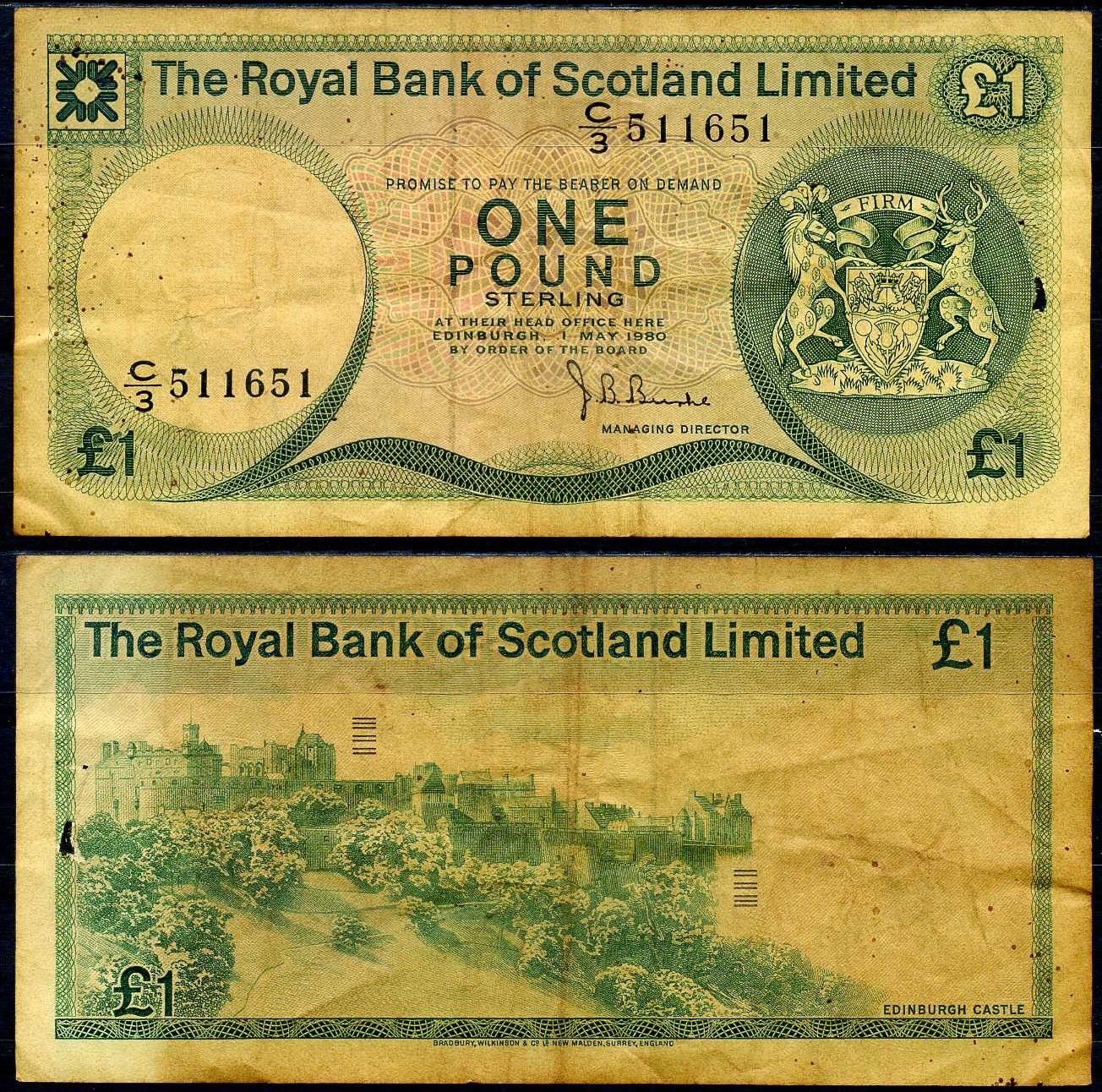 Шотландия 1 фунт 1980 редкий год Pick 336 a бумага 7222-15-3-2