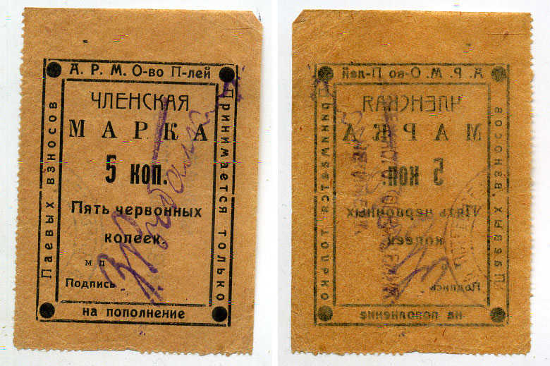Анапа 5 Копеек ND Анапское Районное многолавочное общество потребителей. Членская марка Рябченко 14545 р бумага 436-9-2-1