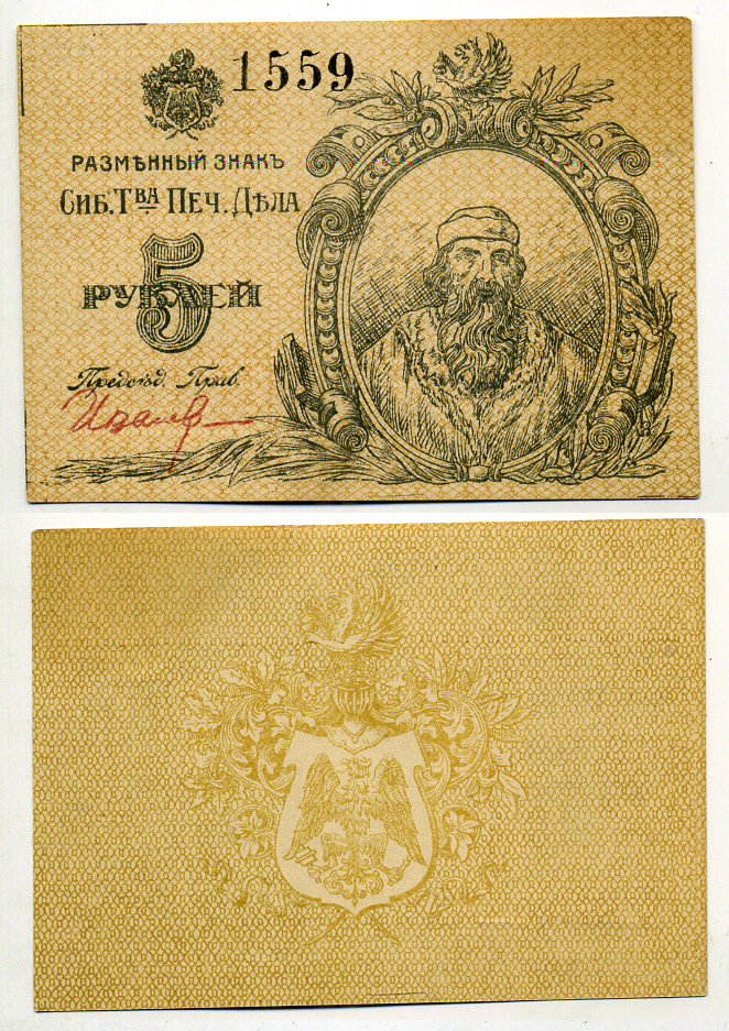 Томск, Сибирское товарищество "Печатное Дело" 5 рублей ND Разменный знак, с номером и подписью Рябченко 20632р бумага 451-58-1