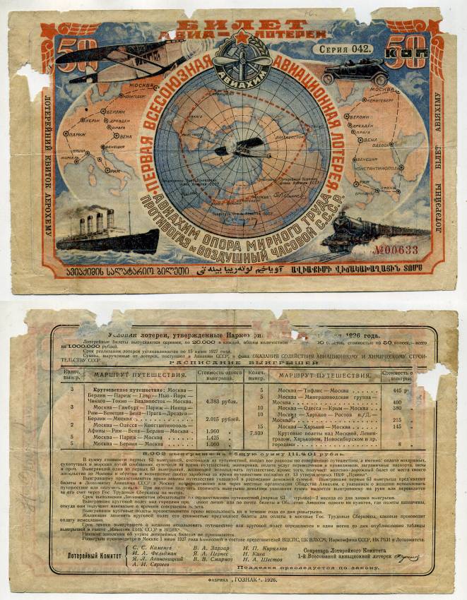 ---СССР 50 копеек 1926 АВИАХИМ, первая всесоюзная авиационная лотерея. Серия 042, № 00633, Типография фабрики "ГОЗНАКА" бумага 438-21-1-2НовинкиАнтичность и раннее СредневековьеМонеты - ГерманияМонеты - ЕвропаМонеты - Австралия и ОкеанияМонеты - АзияМонеты - АмерикаМонеты - АфрикаМонеты - Россия, СССР, страны СНГ и БалтииБанкнотыАксессуары, ЛитератураОткрытки, карточкиАкции, облигацииЖетоны, Медали, ЗнакиМаркиКартины, декоративно-прикладное искусство