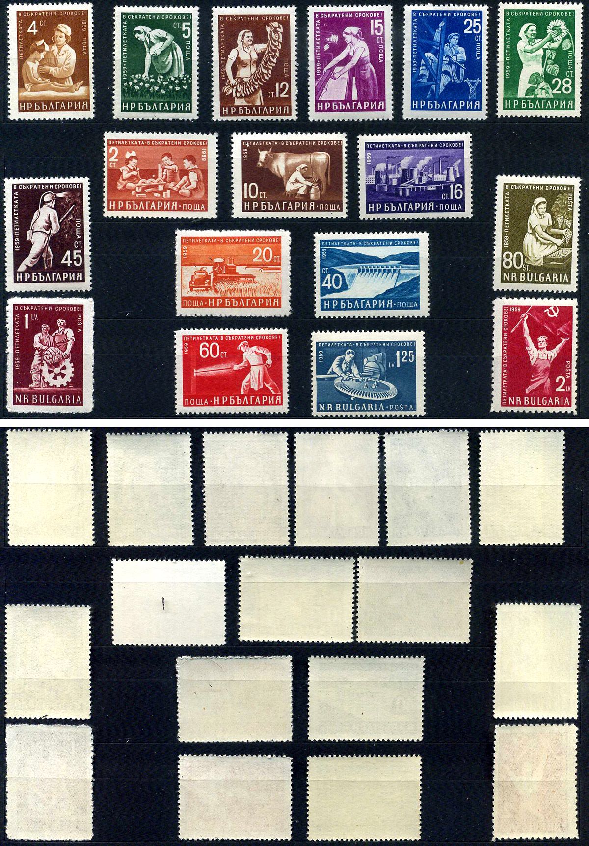 Болгария набор из 17 марок (2, 4, 6, 10, 12, 15, 16, 20, 25, 28, 40, 45 и 80 стотинок. 1, 1,25 и 2 лева) 1959, 1960 и 1961 Пятилетний план в более сжатые сроки Михель 1145, 1146, 1147, 1148, 1149, 1150, 1151, 1187, 1188, 1189, 1190, 1191, 1192, 1193, 1234