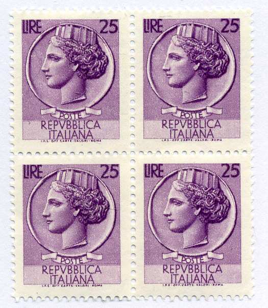 Италия блок из четырех почтовых марок по 25 лир Республика Италия бумага UNC (пресс) 00-00