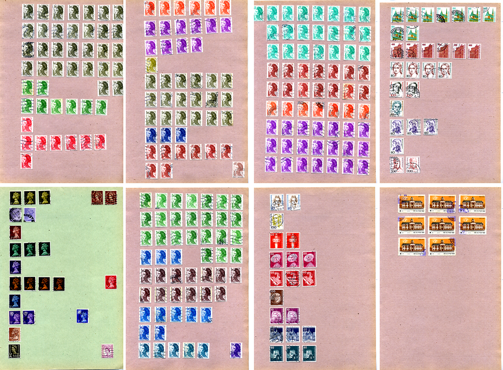 Листы с марками (марки мира) 926 марок 1953-1992 Австрия, Италия, Франция, ФРГ, Великобритания и и.д. 00-01-17-11