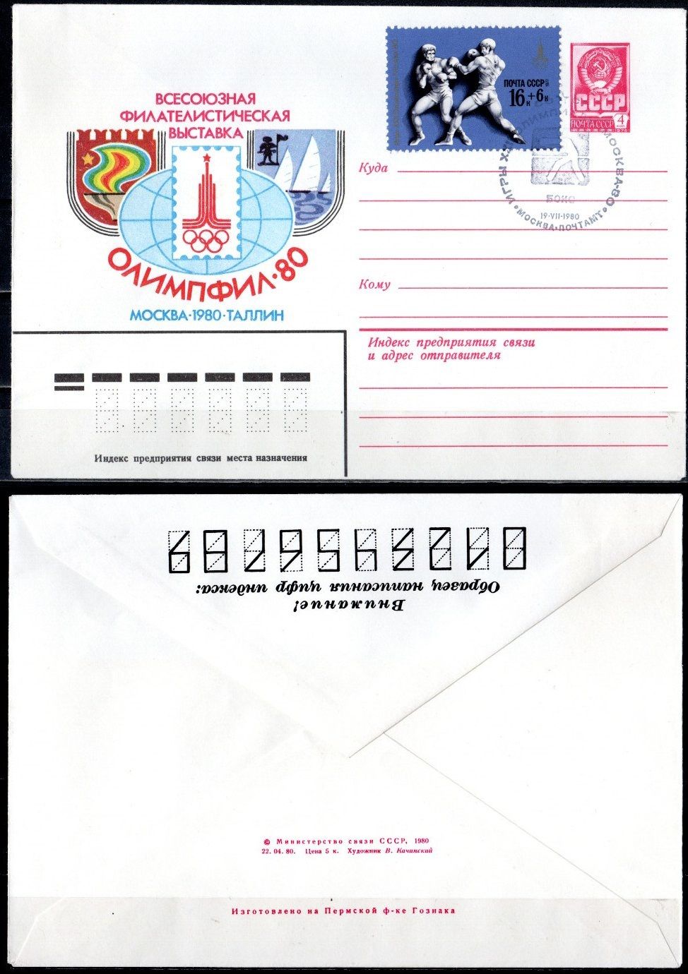 СССР конверты спецгашения (КПД-Конверт первого дня) с маркой 16+6 копеек 1980 Олимпиада 80 - Москва, бокс 2194-1-1-1