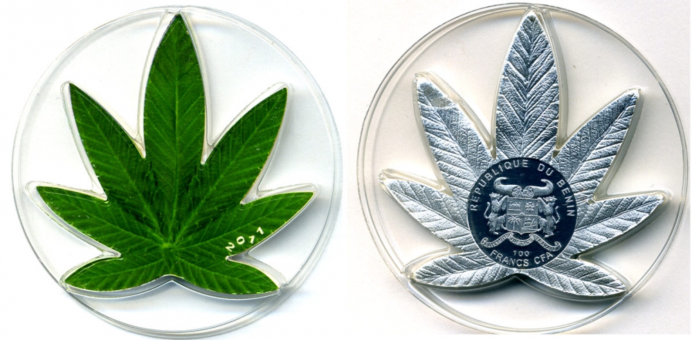 Бенин 100 франков 2011 листок, с запахом, монета не правильной формы, цветная эмаль, тираж 2500 экз KM NEW медно-никель PROOF 1071-8-31