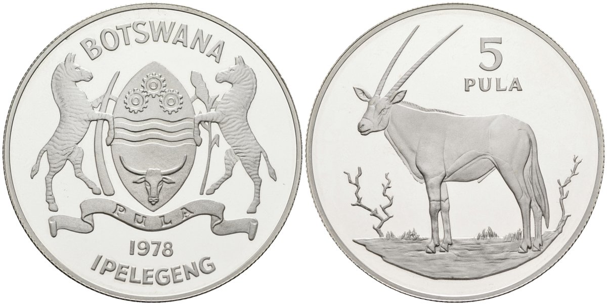Ботсвана 5 пула 1978 серия защита окружающей среды, орикс, тираж 4026 экз. KM 11 серебро PROOF 1080-5-42
