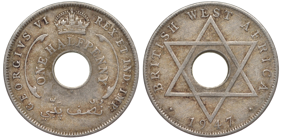 Британская Западная Африка 1/2 пенни 1947 H, Георг VI KM 18 медно-никель 25-1446
