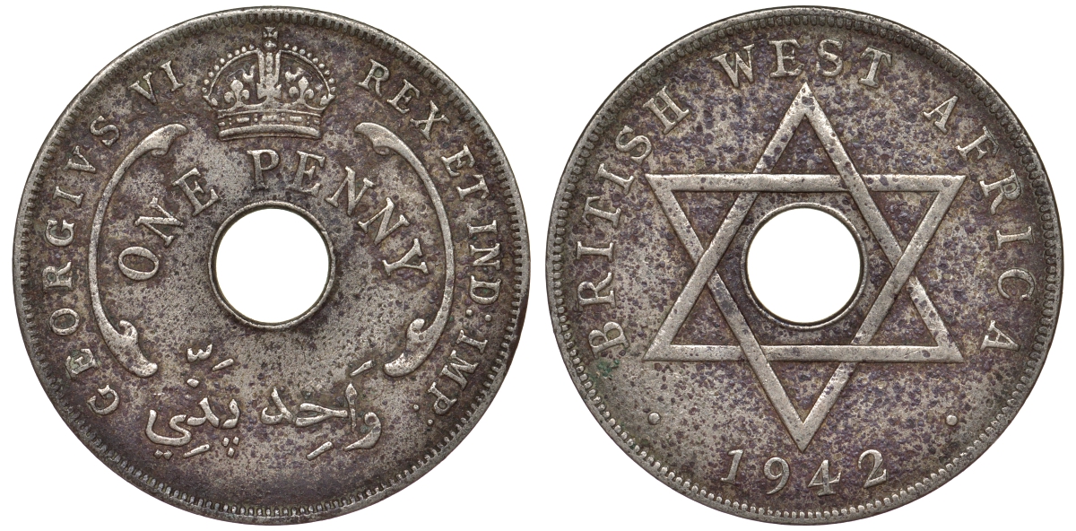 Британская Западная Африка 1 пенни 1942 Георг VI KM 19 медно-никель 25-2116
