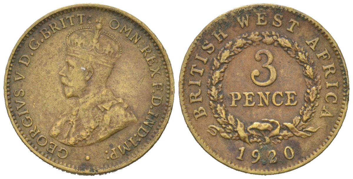 Британская Западная Африка 3 пенса 1920 KM 10b олово латунь 4615-916