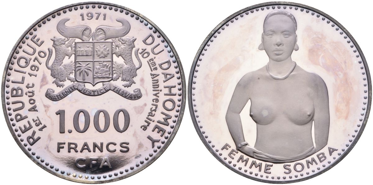 Дагомея 1000 франков 1971 серия 10 лет независимости, аборигенка, буклет KM 4 серебро PROOF 01-175-22-2