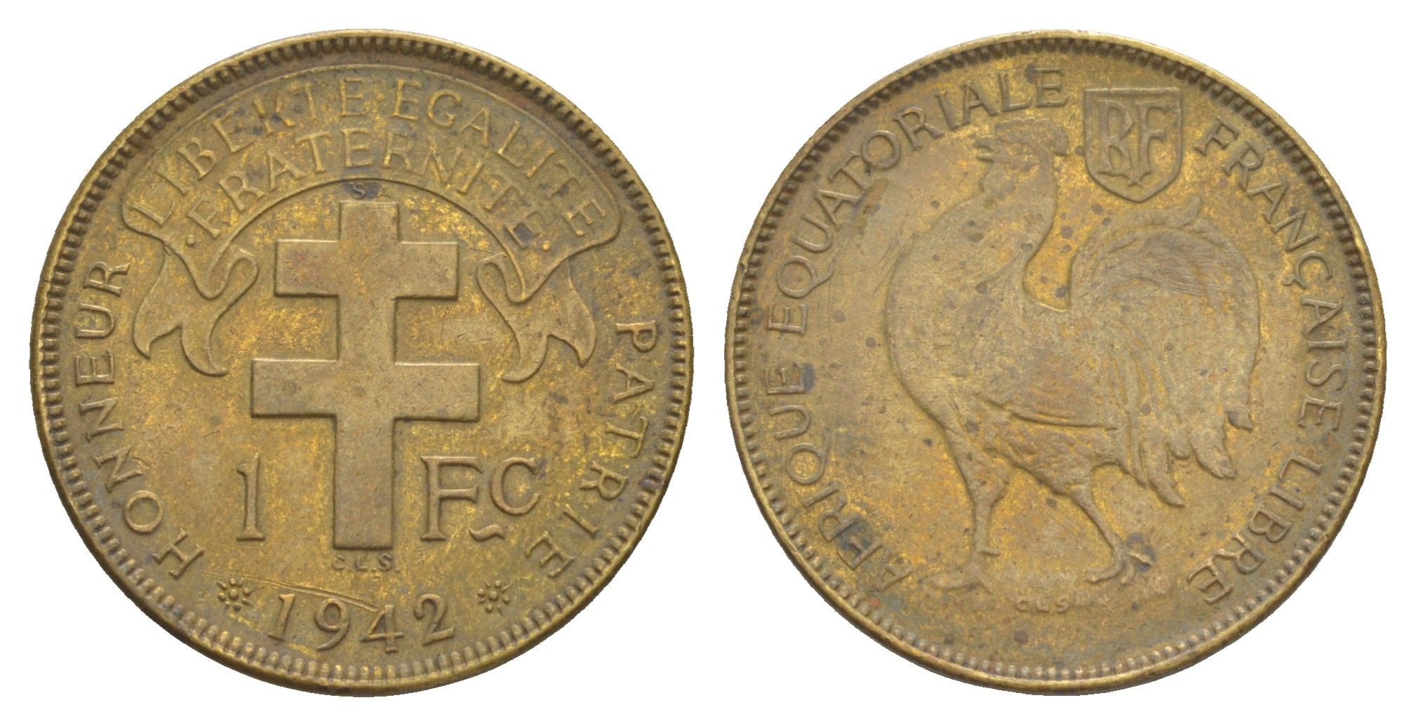 Французская Экваториальная Африка 1 франк 1942 KM 2 латунь 1522-1443