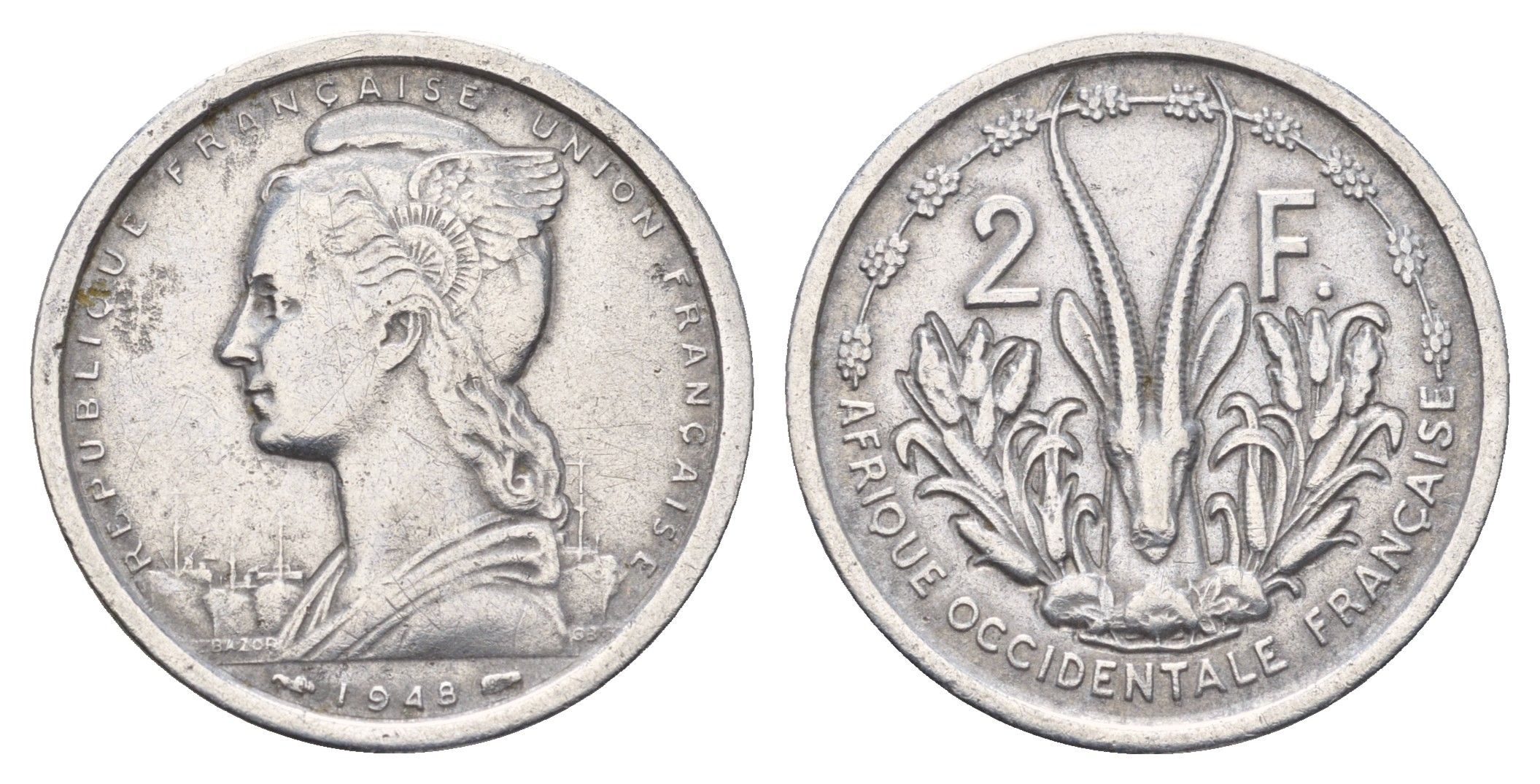 Французская Западная Африка 2 франка 1948 KM 4 алюминий 4671-133