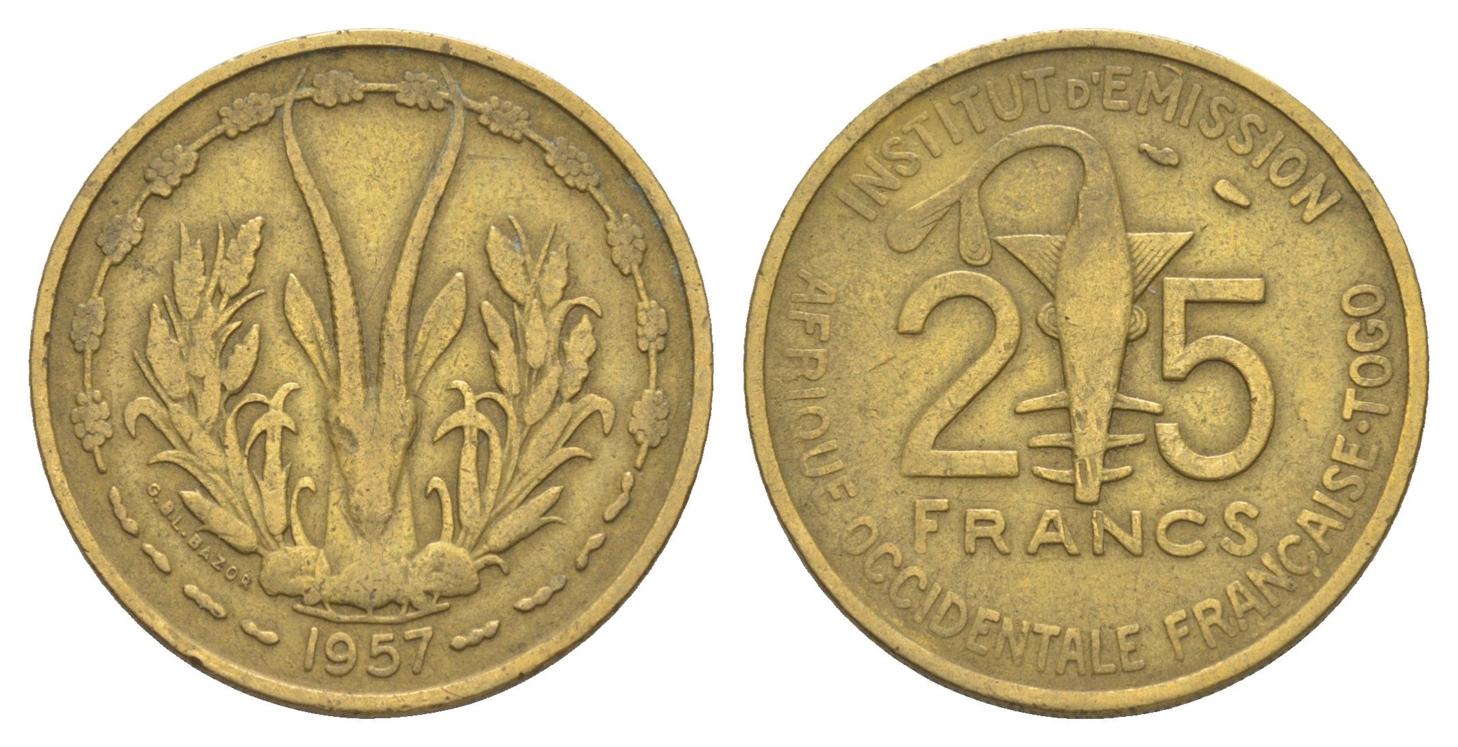 Французская Западная Африка 25 франков 1957 KM 9 медь алюминий никель 4650-247