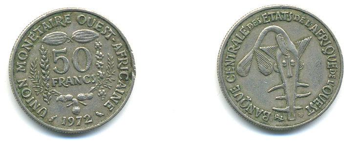 ЗАПАДНАЯ АФРИКА 50 ФРАНКОВ 1972 FAO KM 6 медно-никель 86-1714