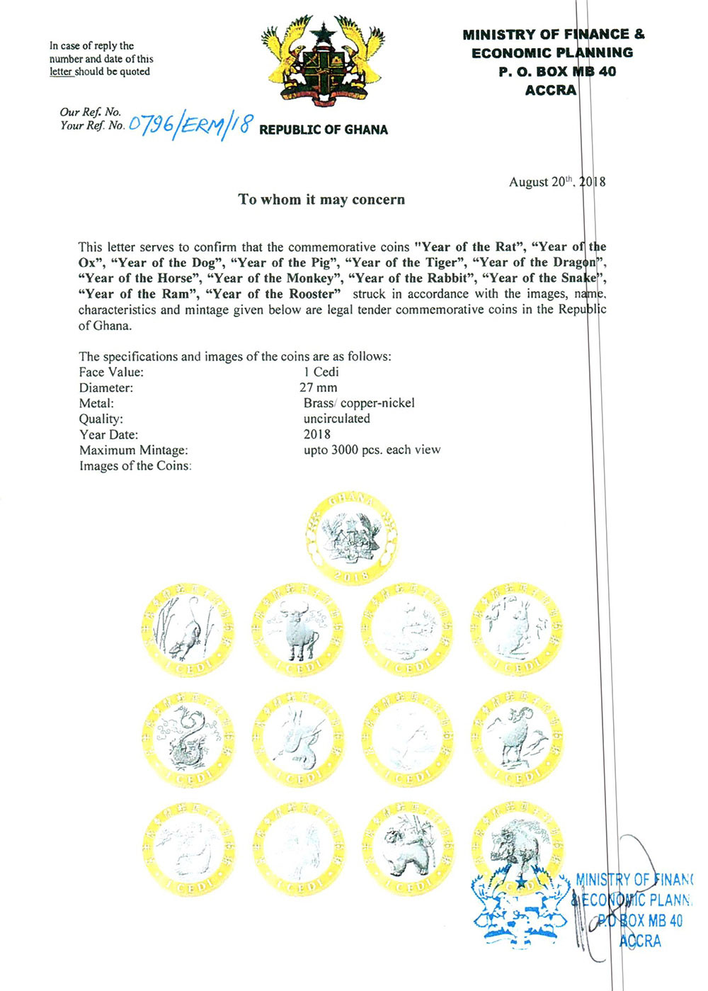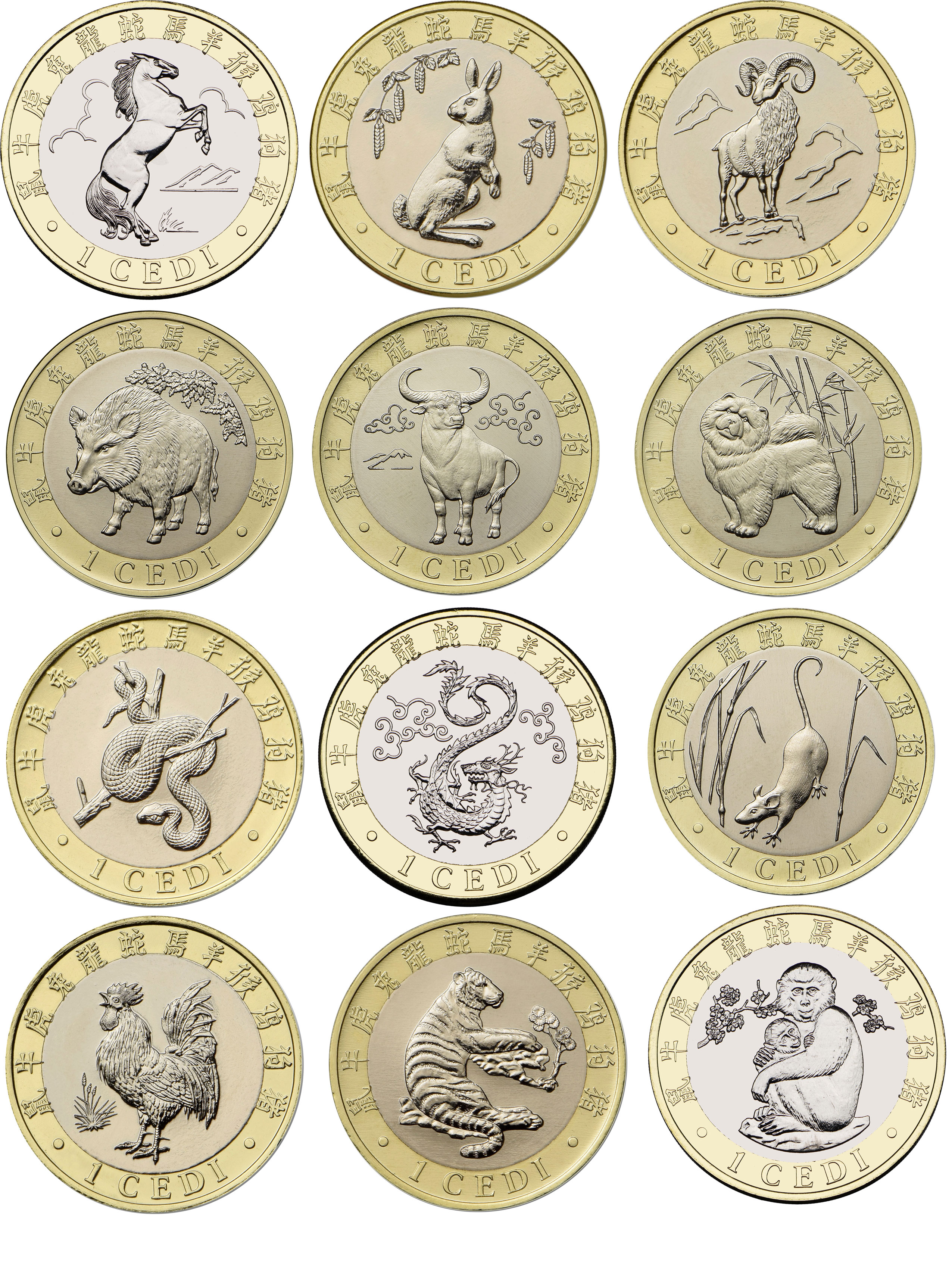 Гана набор из 12 монет по 1 седи 2018 ММД, лунный календарь, в оригинальных буклетах KM NEW биметалл UNC 5-4-5-02