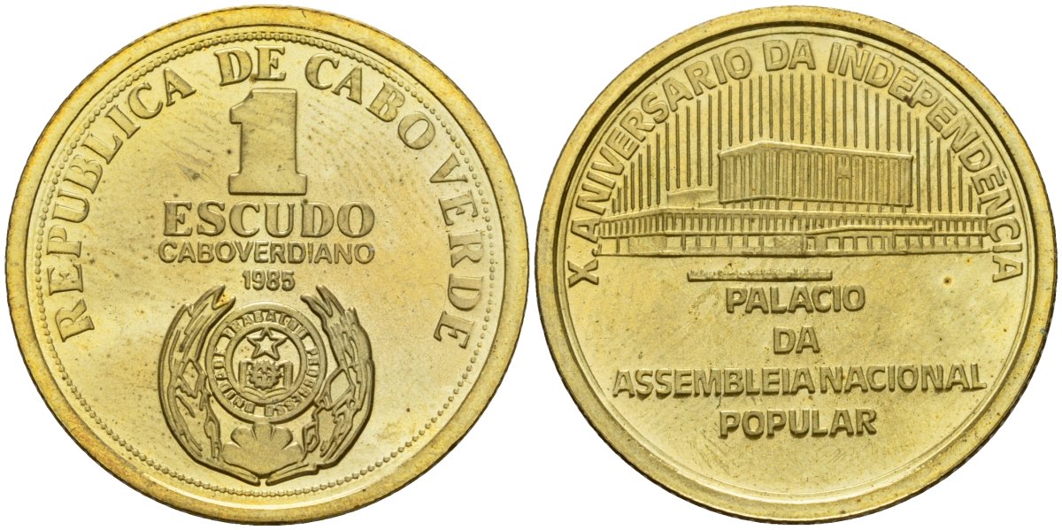 ----Кабо-Верде 1 эскудо 1985 10 лет независимости KM 23 сталь плакированная латунью PROOF 3711-523