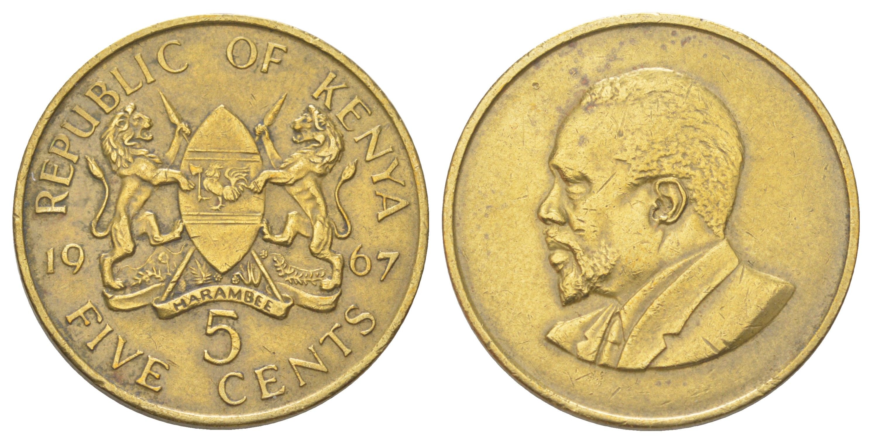 Кения 5 центов 1967 KM 1 никель латунь 4612-1136