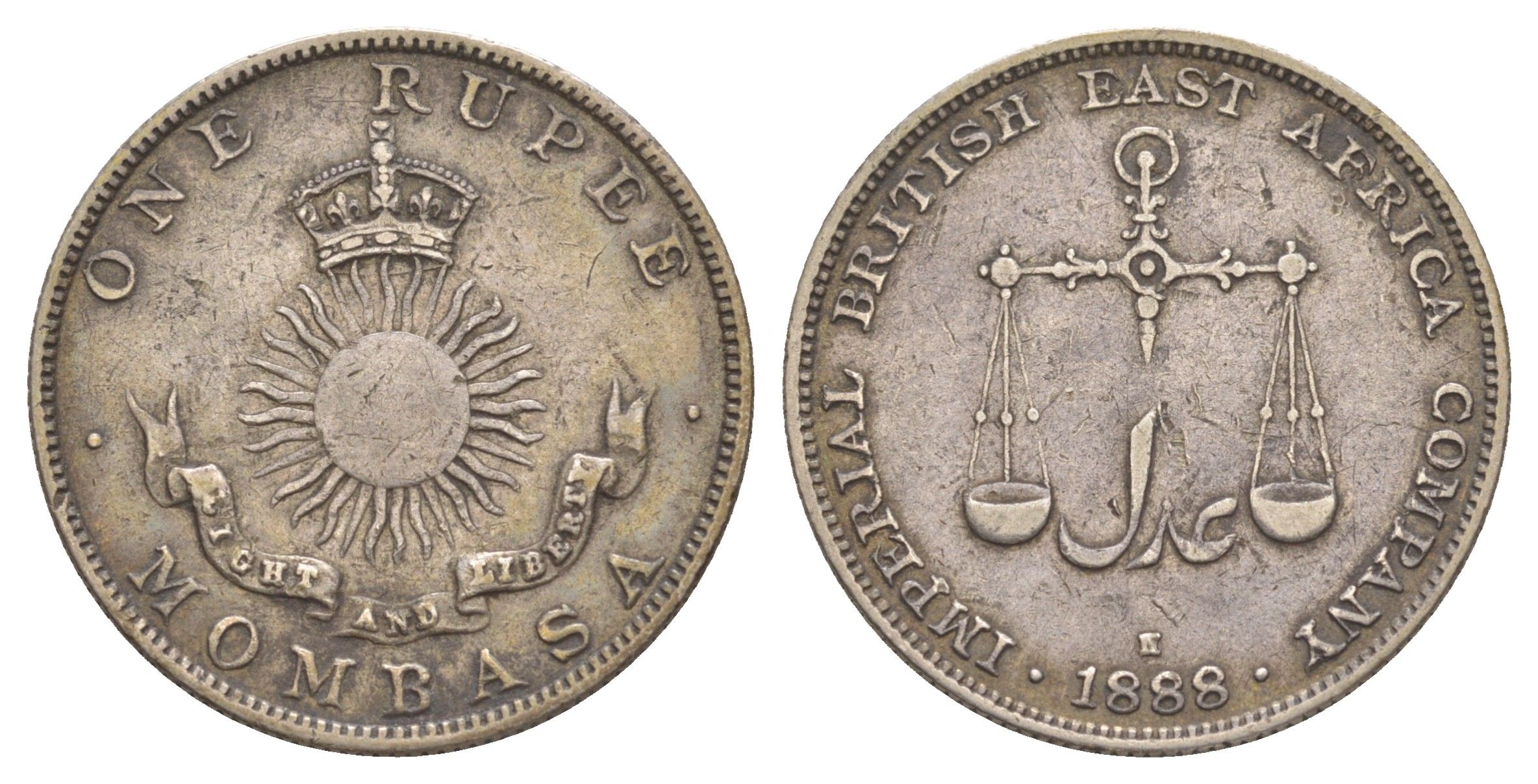 Момбаса 1 рупия 1888 KM 5 серебро 1521-345