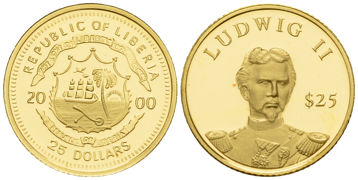 Либерия 25 долларов 2000 Людвиг II золото PROOF 00-815-09
