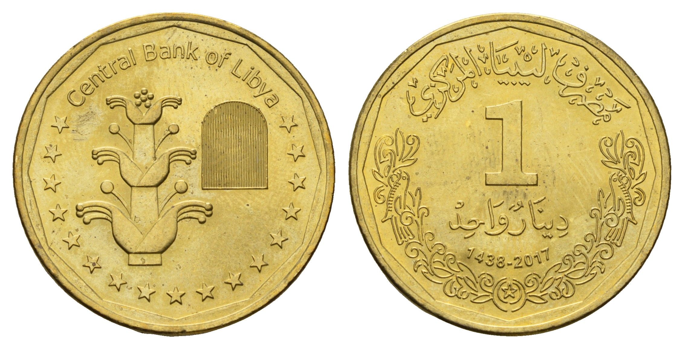 Ливия 1 динар 2017 год-тип KM 36 сталь плакированная латунью UNC 4678-354