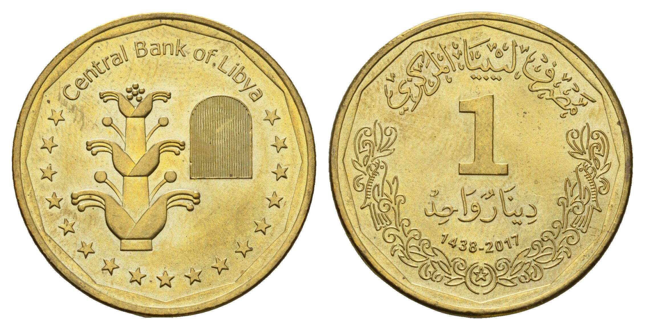 Ливия 1 динар 2017 год-тип KM 36 сталь плакированная латунью UNC 4678-356