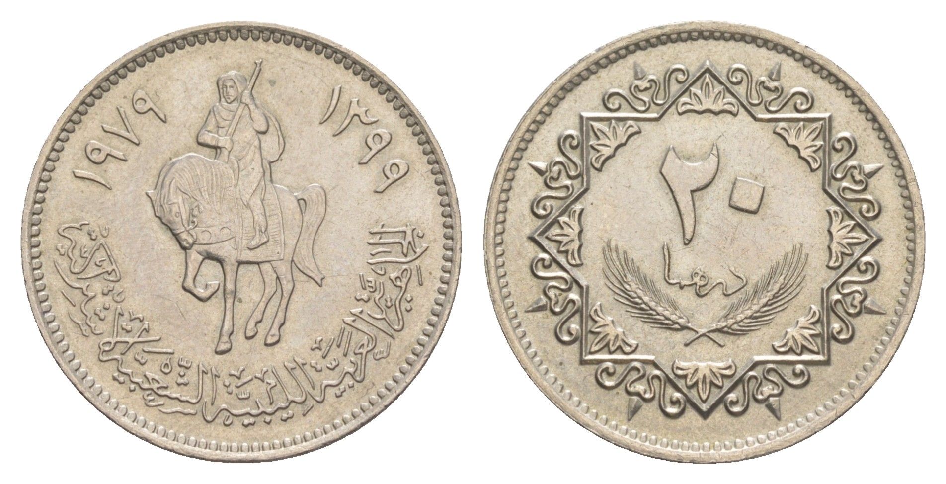 Ливия 20 дирхамов 1979 KM 21 сталь плакированная медно-никелем 4544-1024