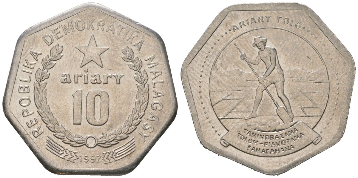 Мадагаскар 10 ариари 1992 ФАО, Малагаси KM 18 сталь плакированная никелем 4584-657