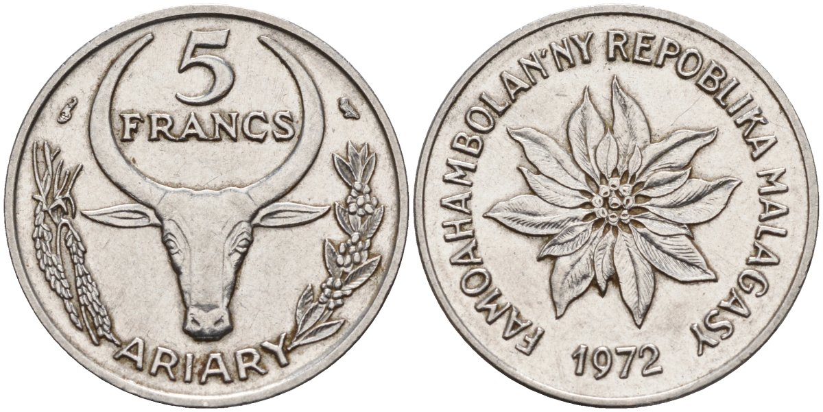 Мадагаскар 5 франков 1972 KM 10 сталь 4141-643
