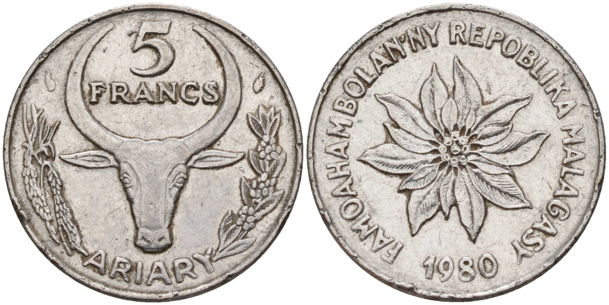 Мадагаскар 5 франков 1980 KM 10 сталь 4141-646