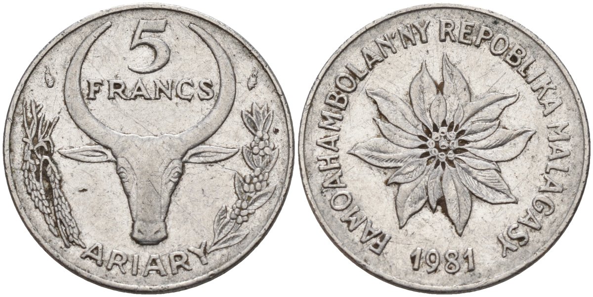 Мадагаскар 5 франков 1981 KM 10 сталь 4141-647