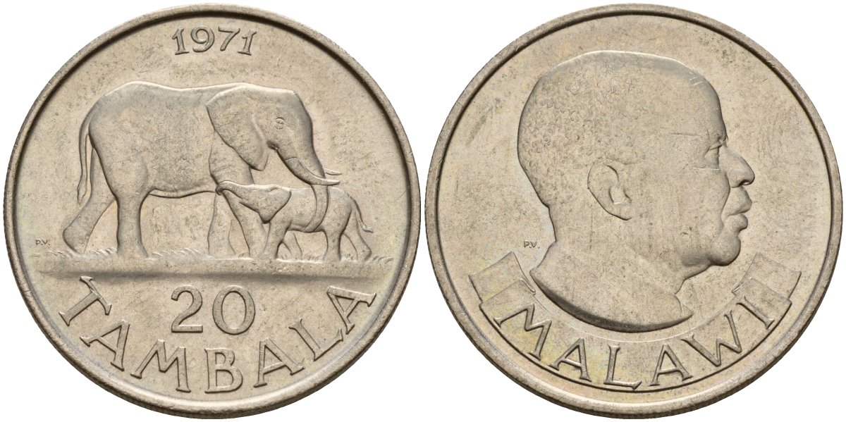 Малави 20 тамбал 1971 KM 11 медно-никель 4140-612